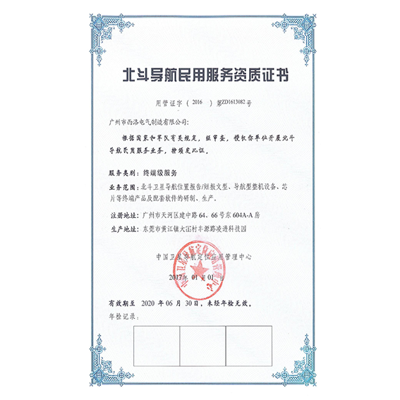 产品名称: 北斗导航民用终端级服务资质 |