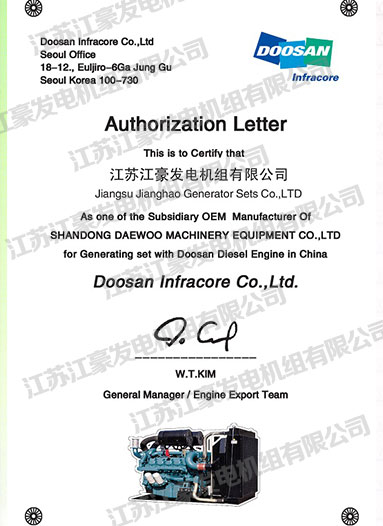产品名称: 斗山(DOOSAN)OEM授权书 |