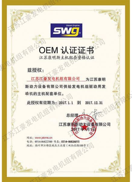 江苏康明斯OEM授权书 发布时间: 2017-06-12 17:18:22 发布网站: 中招网