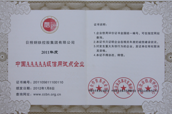 产品名称: 2011年度中国AAAAA级信用试点企业 |