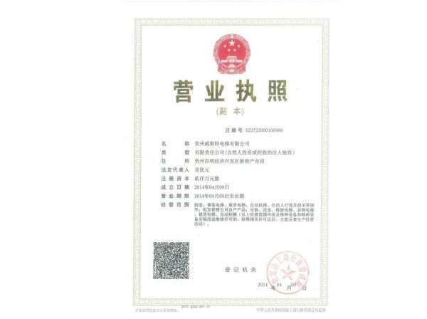 | 持证单位: 重庆威斯特电梯有限公司 |