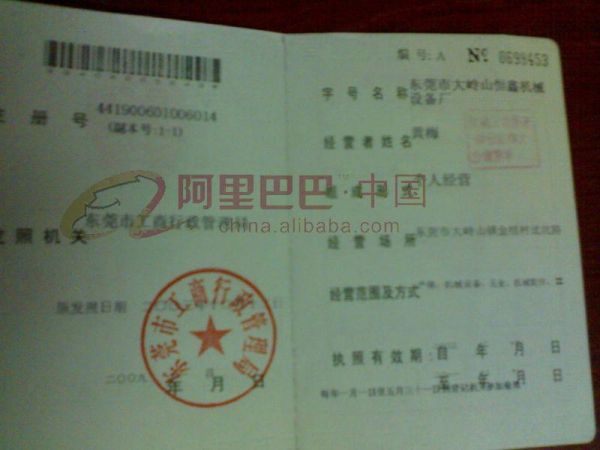 产品名称: 营业执照副本 |