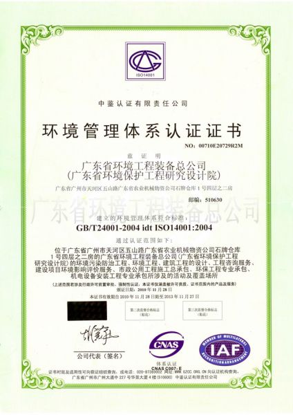 环境管理体系认证证书 发布时间: 2017-07-18 14:35:35 发布网站: 中招网