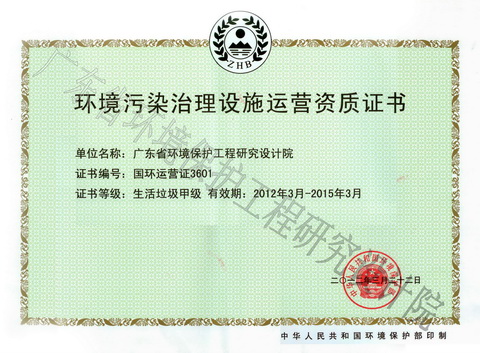 产品名称: 环境污染治理设施运营资质证书 |